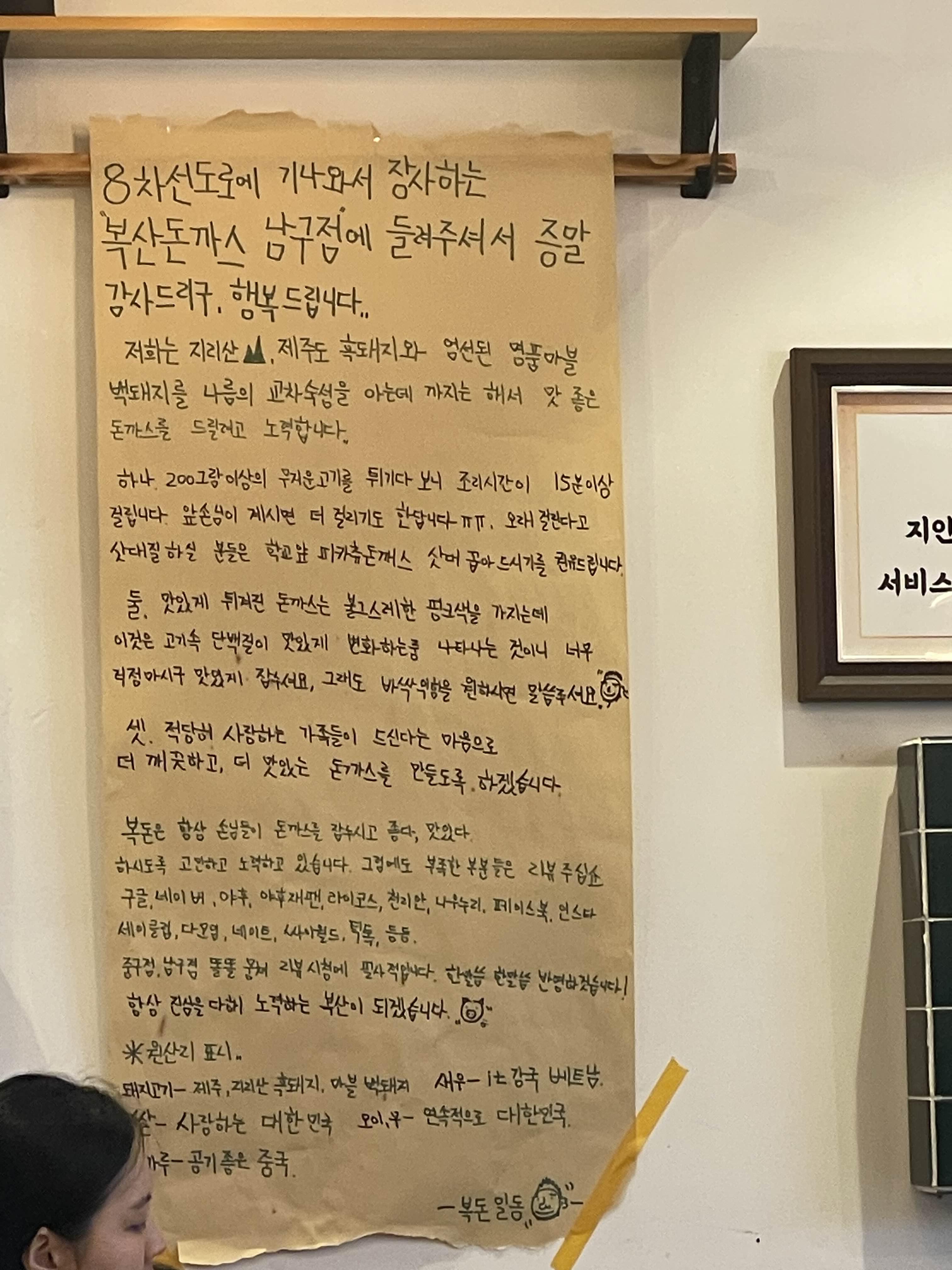 복산돈까스 고객들을 위한 사장님의 편지? ㅎㅎㅎ